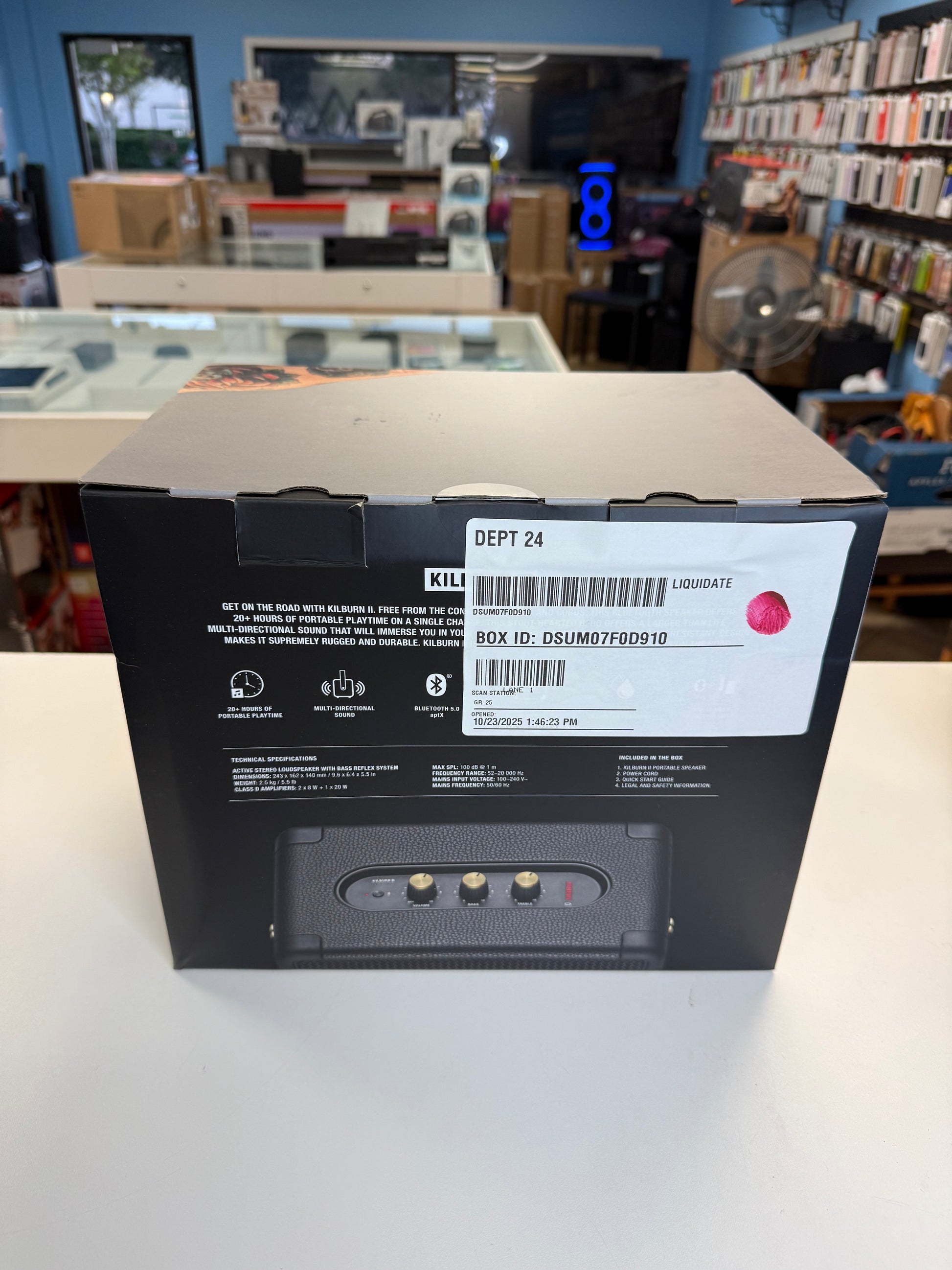 The Marshall Kilburn II Portable Bluetooth speaker is a brand new addition to the market, offering superior sound quality and sleek design. The black color adds a touch of sophistication, while the Bluetooth capabilities allow for convenient and wireless use. Try it before you buy it and experience the power of Marshall.Marshall Kilburn II Portable