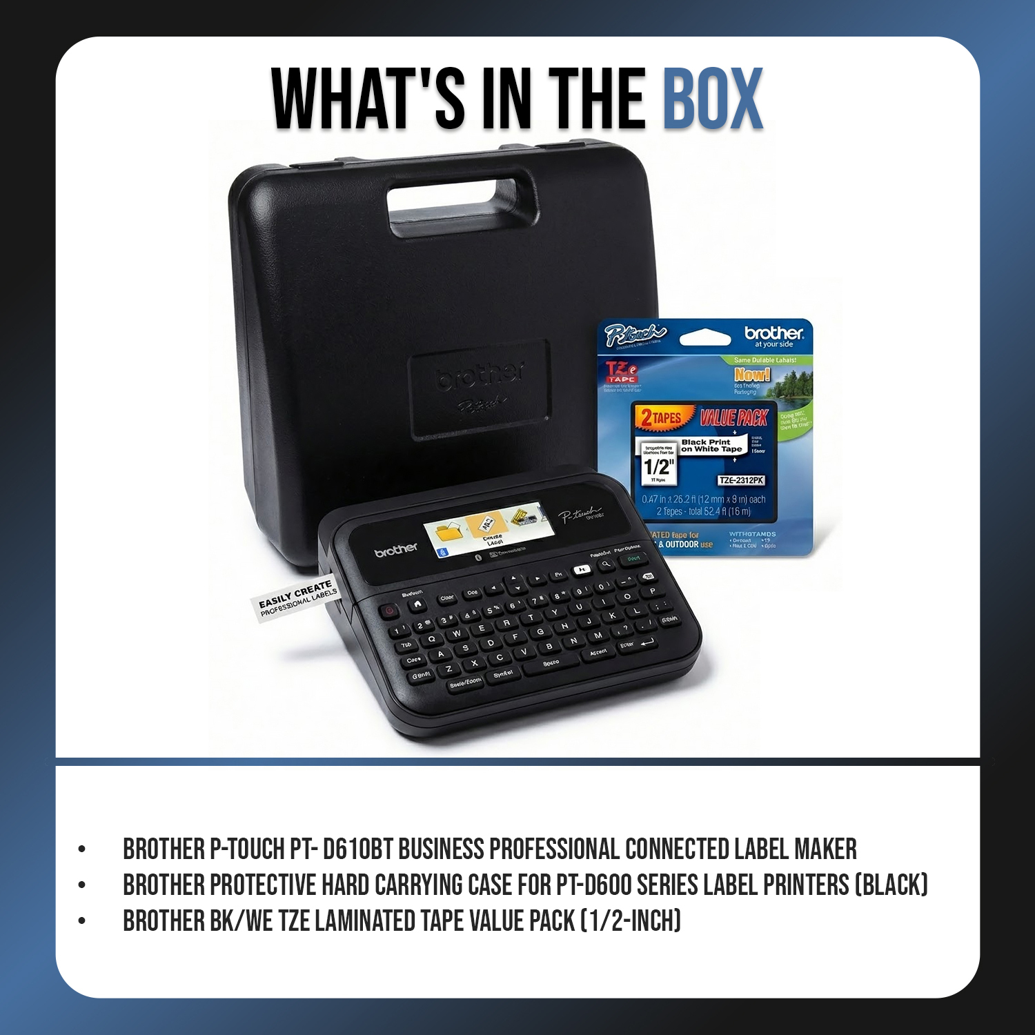 Brother P-touch PT-D610BT Label Maker with Hard Case and Laminated Tape Pack